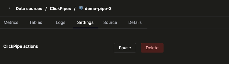 - Примерно через 5 секунд (а также после обновления страницы) статус ClickPipe должен измениться на Paused.